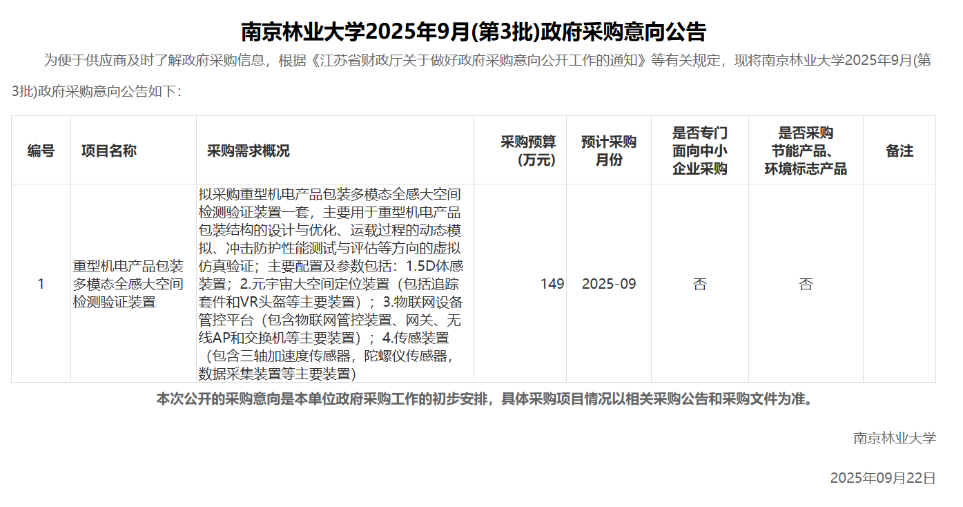南京林业大学2025年9月(第3批)政府采购意向公告